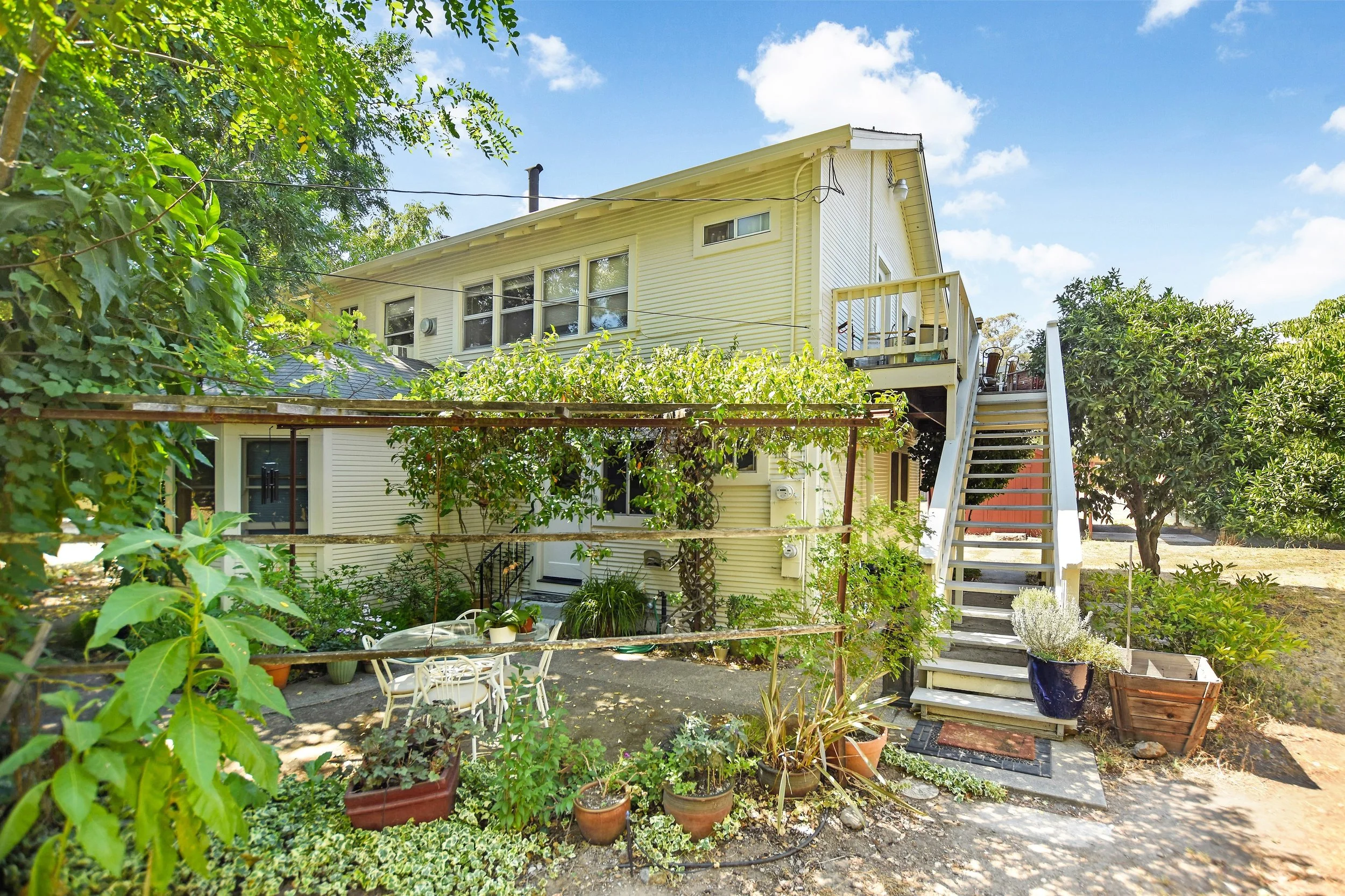 Legend has it that the property was once used as the entrance to the great Harazsthy estate just to the northeast. The property’s existing dwellings include a sprawling vintage California Craftsman-style home, a converted two-bedroom tank house/workshop, and a former two-story gatehouse which was the original home on the property and now is a Duplex with two units. The quintessential red barn is constructed of redwood and was once used for commercial apple packing.